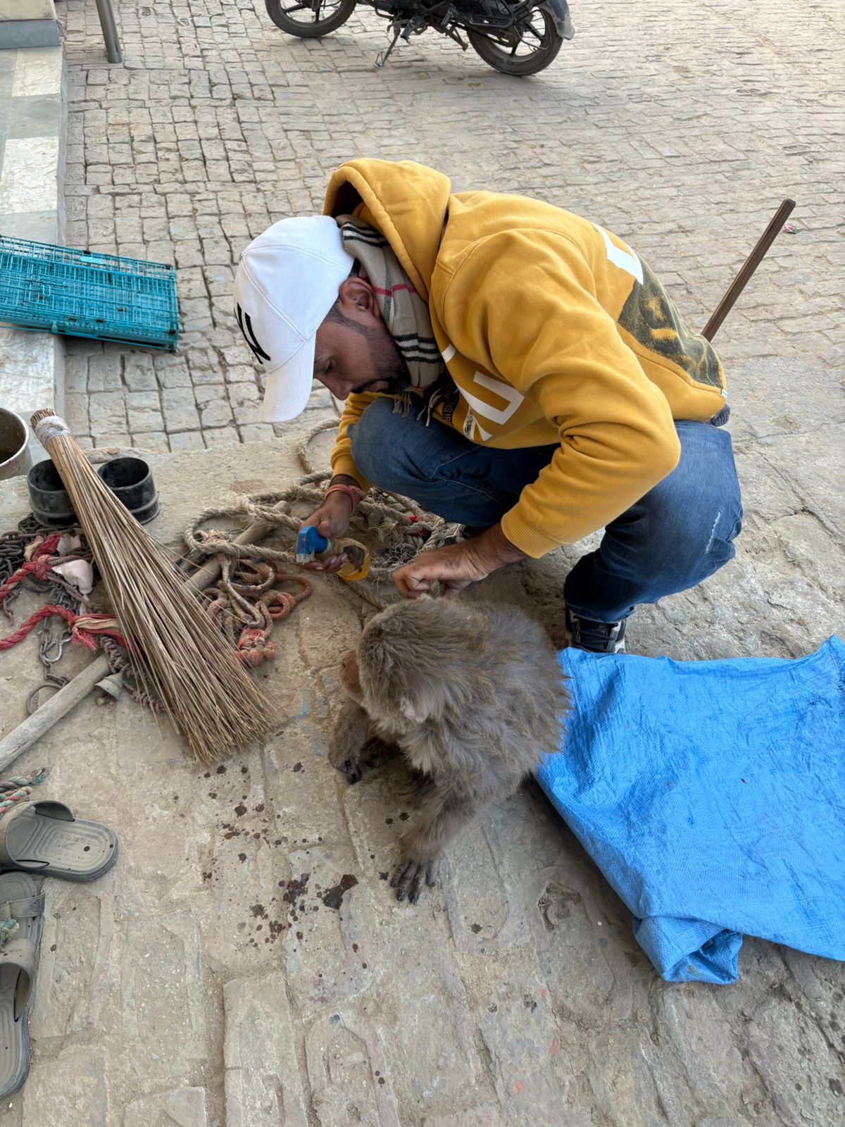Today, in a dirty dump area, we rescued a blind Monkey (Vanar Maharaj) in an extremely painful and heartbreaking condition. His weak body was filled with maggots, deep wounds, and unbearable suffering. He was lying helpless… waiting for someone to save him.