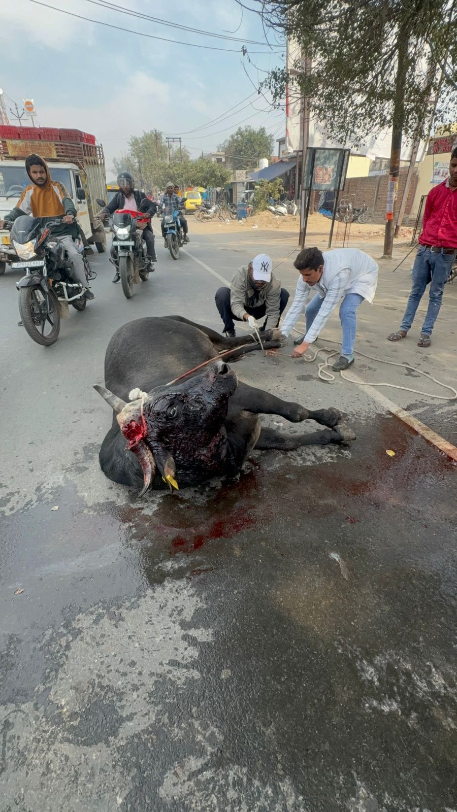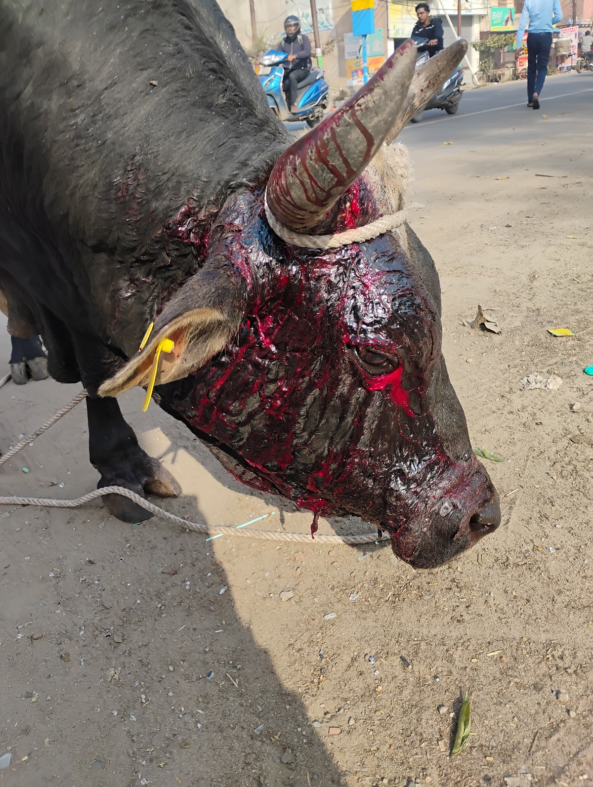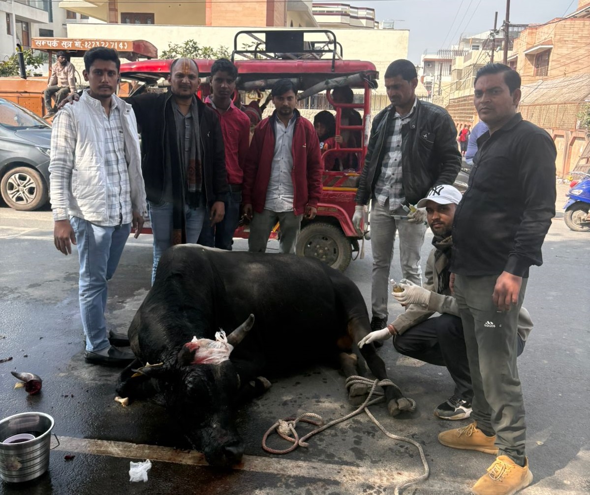 With a heavy heart, we inform you that Nandi Ji met with a brutal road accident on NH-93 (Aligarh to Agra).Due to the high-impact collision, one of his horns has been severely broken, causing extreme pain, bleeding, and trauma.